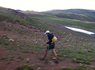 In my case it was probably just a matter of simple fitness. Having been sidelined with a stress fracture in my foot I've only had about 8 weeks of running and these have been made up entirely of slow-paced easy runs. I've had decent volume and vertical (about 100,000 feet of climbing over the last month) but nothing in the way of high-intensity training. In contrast, during the race my heart rate didn't dip below 170 until well over 2 hours into the race. It's no surprise then that I needed about 2 hours to recuperate out on the course before I started to come around and actually feel like I could compete again, which I finally did for the last 1.5 hours of the race. For most of the rocky descent to Pacific Mine I tried to mentally psych myself up by just thinking about Bethany who was poised to give Anna Frost a legitimate run for her money for 1st place female. This was short-lived however as upon returning on the out-and-back portion I ran into her coming in, about 5-8 minutes behind Anna, her normally long and graceful stride now choppy and antalgic due to badly blistered feet. She did not look like a happy camper but still managed to encourage me. (She ended up dropping, bummer.)
